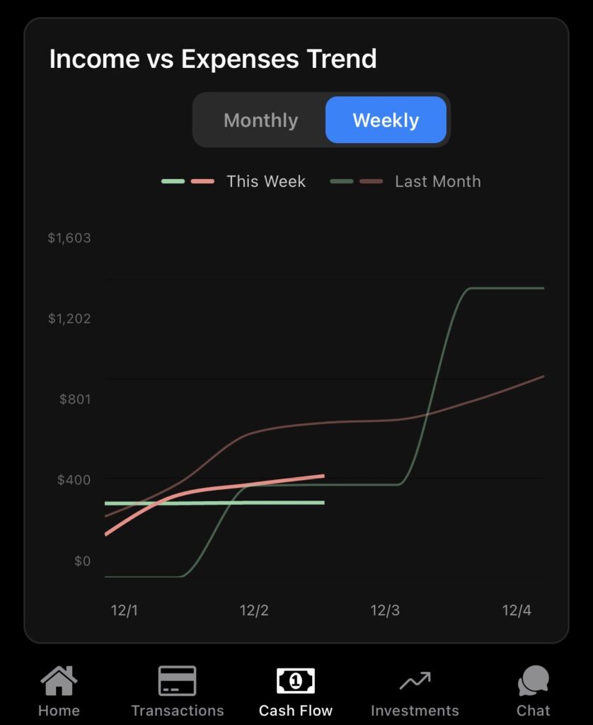 The highlight of this release is the new Cash Flow Trend chart. This feature is designed to help you quickly understand how money is moving in and out over time, beyond just tracking balances or net worth totals.